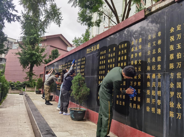 儀式尾聲,眾人手持菊花,有序走向烈士墓區。大家用抹布仔細擦拭碑面和英名墻?!懊總€名字都是鮮活的英雄,擦凈墓碑,是為了讓后人永遠記得他們為誰而戰?!币幻艘圮娙耸聞障到y干部對身邊學生說。
