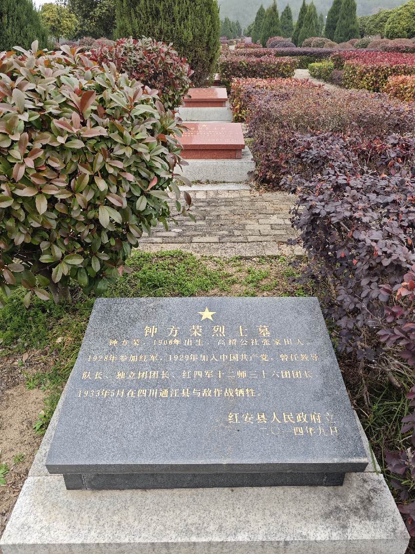 歲月雖遠,但墓碑上每年描紅的字跡仍清晰可辨:“鐘芳榮,河南新縣人,一九〇六年生,中共黨員,一九二八年參加革命,任紅四軍十二師三十六團團長,一九三三年五月在四川通江作戰犧牲?!?/p>