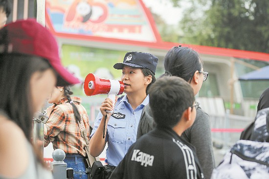 人群中,一個藏藍身影格外醒目,不停地穿梭在園區的各個角落。她就是成都成華公安白蓮池派出所民警向丹黎,基地的“熊貓警長”。昨日,記者跟隨她的腳步,記錄下她如何用堅守筑牢節日安全防線。