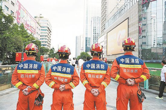 10月2日上午,成都市錦江區華興街消防救援站門口,橙紅色的消防車剛完成檢修,車身锃亮。不遠處的總府路上已出現不少游客身影,記者跟隨該站二級消防士何浩偉與3名隊員,一同走進他們的節日巡查工作。