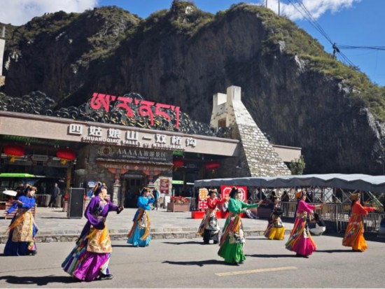 小金縣四姑娘山景區開展非遺進景區活動,通過別斯滿服飾秀、別斯滿服飾體驗、跳鍋莊、川西藏族山歌方式,上演非遺盛宴。