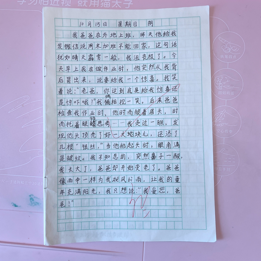 女兒寫的日記。晉兆東妻子李莉瓊供圖