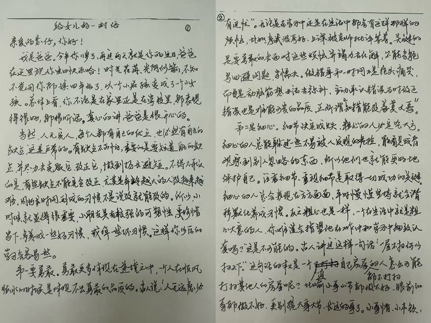 晉兆東寫給女兒11歲生日的信(節選)。人民網記者 張玉琳攝