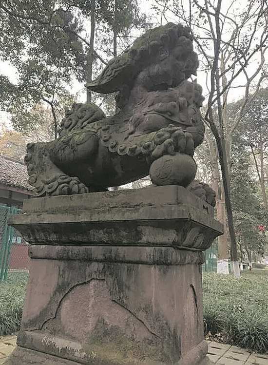 龍藏寺二道山門前的一對石獅,為川西保存最大最完好的石獅之一,通高3.5米,建于清道光九年(1829年),耗費銅錢51.3萬,下方須彌座雕刻麒麟、瓶鼎琴劍等精美圖案。