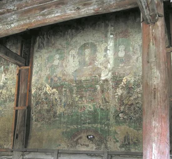 龍藏寺尚存最古老的大殿為大雄殿,殿內左右壁及橫壁有著九鋪共計147平方米的明代壁畫,為四川明代壁畫內容最豐富的一處,同時也是四川現存明代壁畫中工藝最精湛的壁畫之一。壁畫采用工筆重彩,線描與瀝粉貼金相結合的技法,顏料以礦物顏料為主,色澤經久不變。