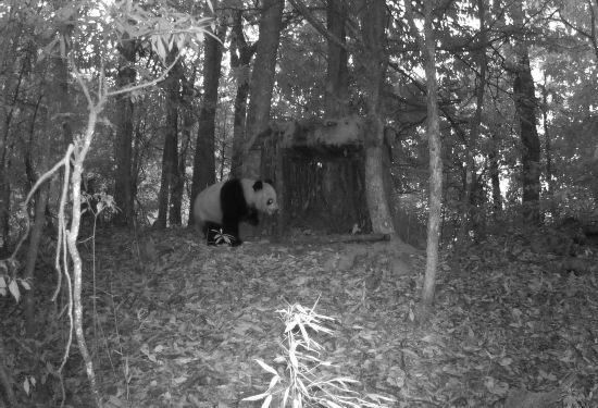 在尹選鴻的電腦里,珍藏著一組珍貴的照片:一只野生大熊貓在人工搭建的巢穴附近悠閑活動,胖乎乎的身影在鏡頭前格外惹人喜愛。
