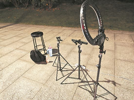 一臺補光燈、一個插線板、三部手機、一個小凳子……10月15日晚10點左右,金牛公園旁的人行道上,約100米的距離內有近20位網絡主播正在直播,美麗的夜色成為他們直播的天然背景。