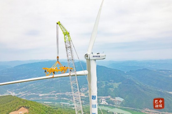 巴中通江興隆風電項目完成首臺風力發電機吊裝