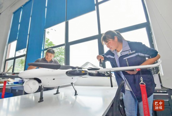 巴中縱橫無人機科技有限公司工人正在生產無人機產品