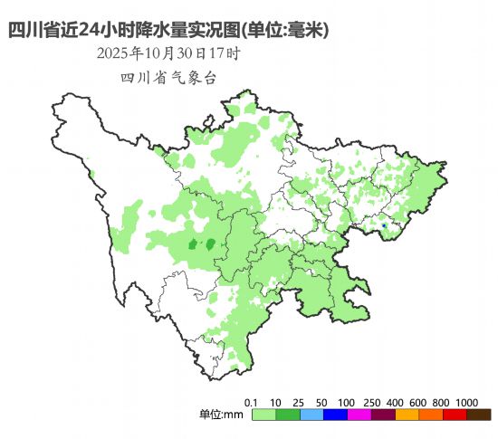 10月31日晚上到11月1日白天,盆地大部陰天有陣雨或小雨,中部、西南部有中雨;川西高原陰天有陣雨(雪),部分地方有中到大雨(雪),局地暴雪(雨);攀西地區陰天有小到中雨,局地大雨。