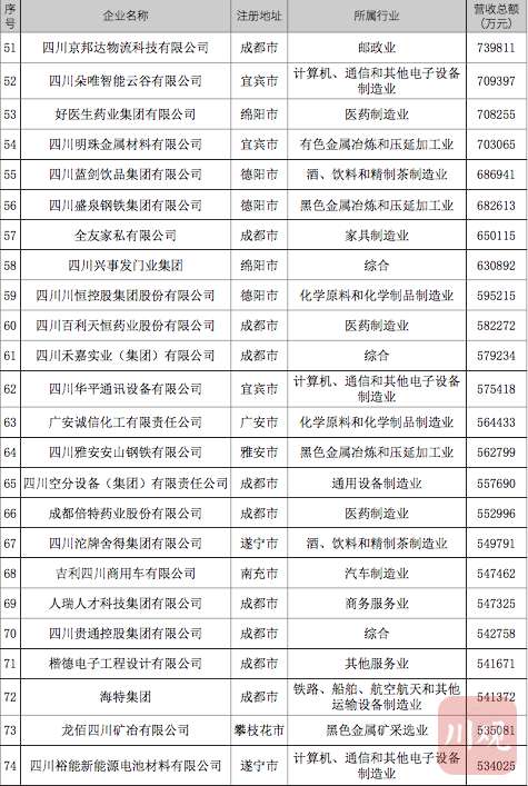 其中,制造業民企前5強分別是:通威集團有限公司、其亞集團有限公司、新希望六和股份有限公司、四川省川威集團有限公司、藍潤集團有限公司。