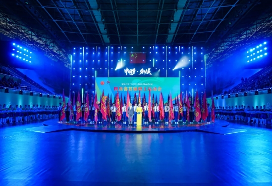 閉幕式現場,氣氛隆重而熱烈。歌舞表演《匠心如炬匯榮光》揭開序幕,舞者以靈動的舞姿展現從古至今精益求精的工匠精神。隨后,各代表團旗手奔跑入場,輕快的步伐、昂揚的斗志贏得現場陣陣掌聲。賽事集錦短片通過一個個“向夢而往”的精彩瞬間,重溫運動員們的拼搏與感動,引起全場共鳴?!痘盍Ω傦L采?融合繪新篇》文藝表演將閉幕式推向高潮,節目融合體育元素與文化藝術,繪就出職工體育事業的燦爛未來。歌舞《偉業》恢弘上演,激昂的旋律、豪邁的舞姿展現出四川職工建功新時代的壯志豪情。