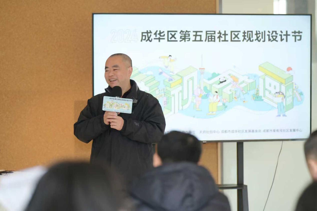 胡宗敏給群眾講解“七彩社區”理念。受訪者供圖