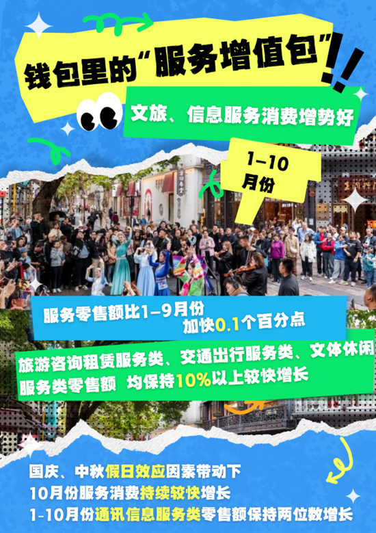 今年以來,各地區、各部門深入推進提振消費專項行動,加力擴圍實施消費品以舊換新,大力發展數字消費和服務消費,擴大文體消費,推動消費潛力釋放。11月14日,國新辦舉行新聞發布會,介紹2025年10月國民經濟運行情況。一組海報,數覽10月我國消費市場亮點,探尋錢包多樣“打開方式”。